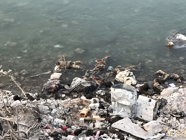 Nehir kenarında birçok ceset sıralanmış durumda. Hava saldırılarında, çatışmalarda, yahut açlıktan-susuzluktan ölen, infaz edilen, nehirde boğulanların cesetlerinden, bir kısmının çocuk olduğu anlaşılıyor.
