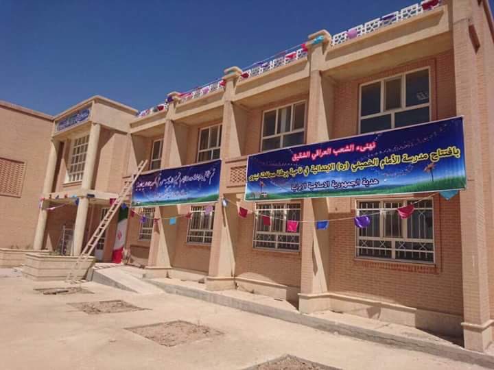 Bölgede açılışı yapılan okula asılan pankartta "İran İslam Cumhuriyeti'nin hediyesidir yazısı yazılırken okulun isminin de "İmam Humeyni" olması dikkat çekiyor.