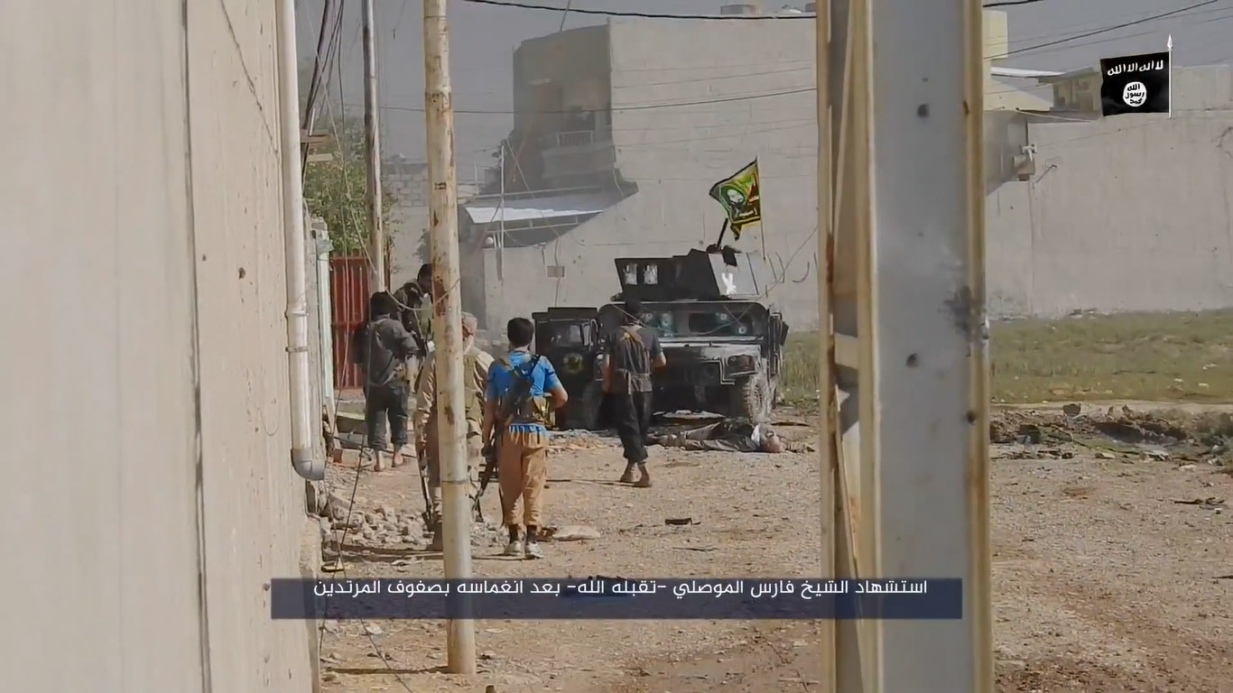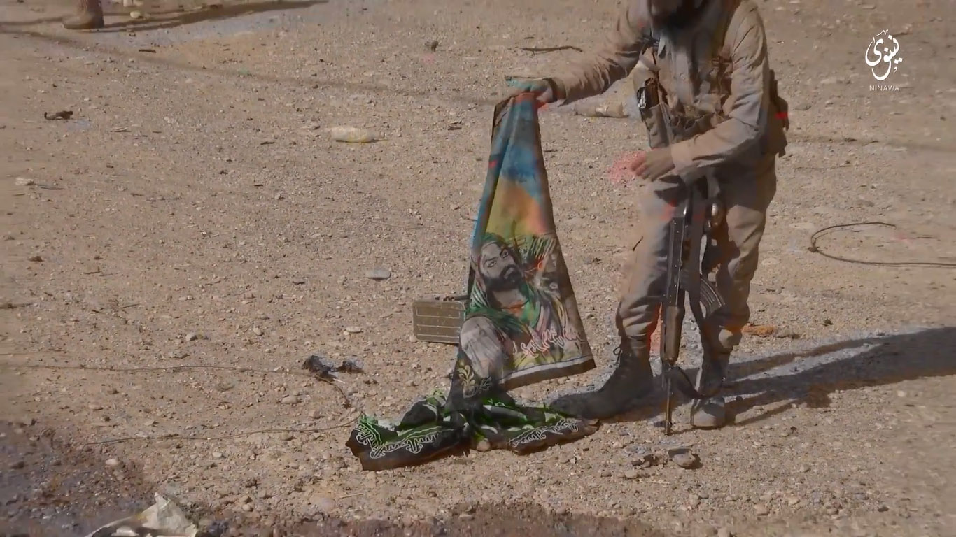 IŞİD'in yayınladığı videoda, şehri ele geçirmek isteyen milislerin taşıdığı Şii inancına ait flamalar dikkat çekiyor: