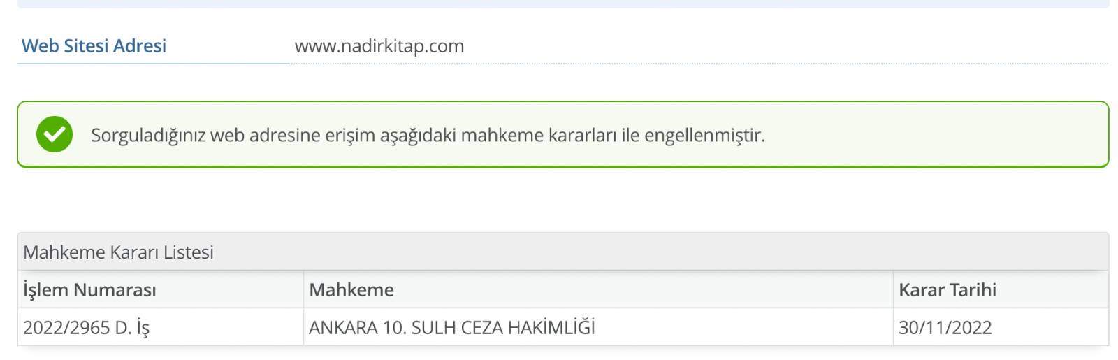 Nadir Kitap internet sitesine erişim engeli getirildi.