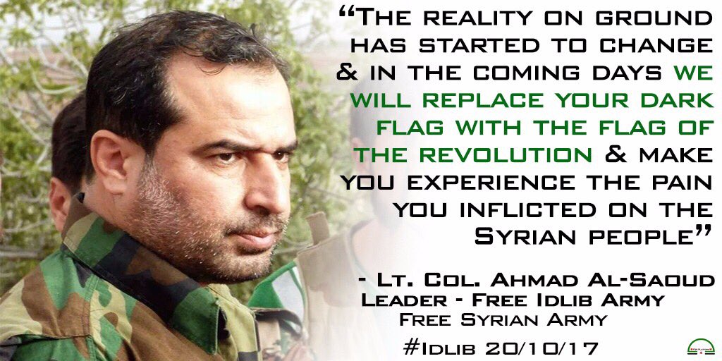 Özgür Suriye Ordusu'na bağlı 13. Fırka'nın lideri Ahmed es Suud'dan Tahriru'ş Şam'ı hedef alan tehdit dolu bir açıklama geldi. Suud'un Twitter hesabında paylaşılan ve ardından Özgür Suriye Ordusu'na bağlı resmi bir Twitter platformunda paylaşılan açıklamada sert ifadeler yer aldı.