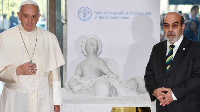 Papa'nın mermer heykeli teslim ettiği FAO Genel Direktörü José Graziano da Silva, "Bugün dünyada 740 milyon göçmen var, göçmen sayısı hiç bu kadar yüksek olmamıştı. Bu, düzenli ve adil bir biçimde yanıt vermemiz gereken bir mesele" dedi.