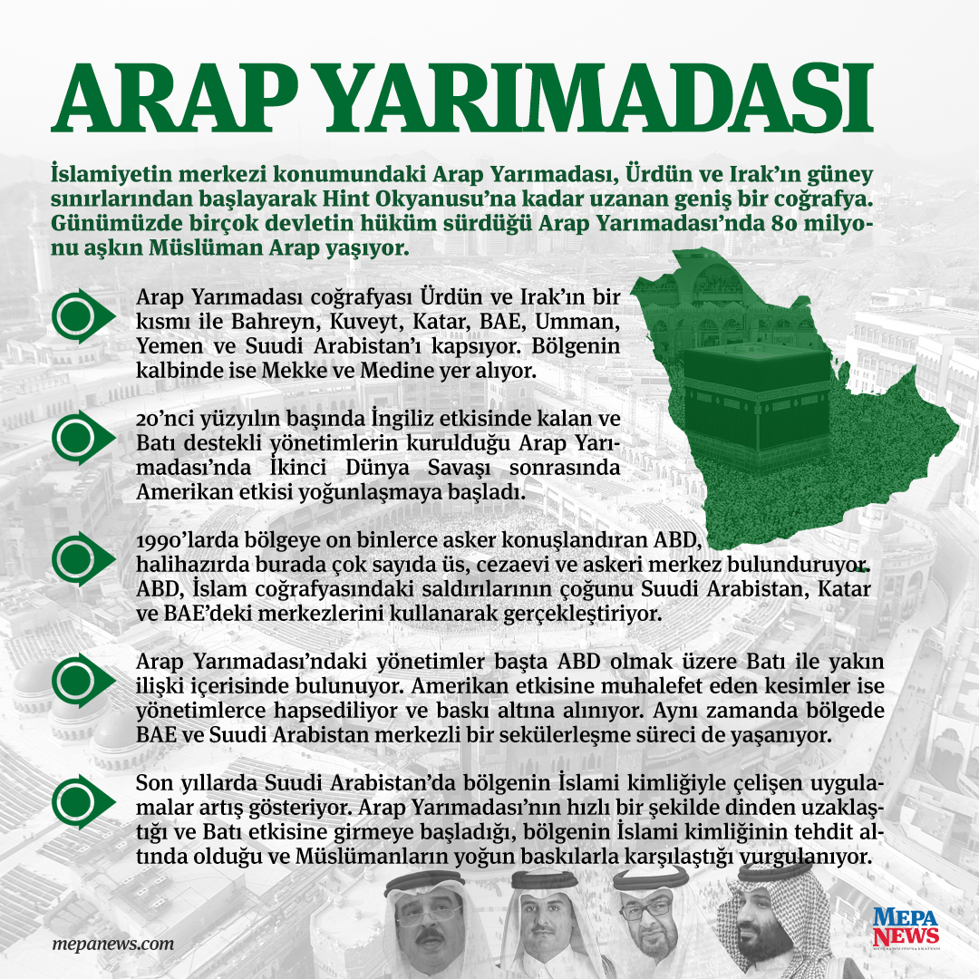 Arap Yarımadası’ndaki yönetimler başta ABD olmak üzere Batı ile yakın ilişki içerisinde bulunuyor. Amerikan etkisine muhalefet eden kesimler ise yönetimlerce hapsediliyor ve baskı altına alınıyor. Aynı zamanda bölgede BAE ve Suudi Arabistan merkezli bir sekülerleşme süreci de yaşanıyor.