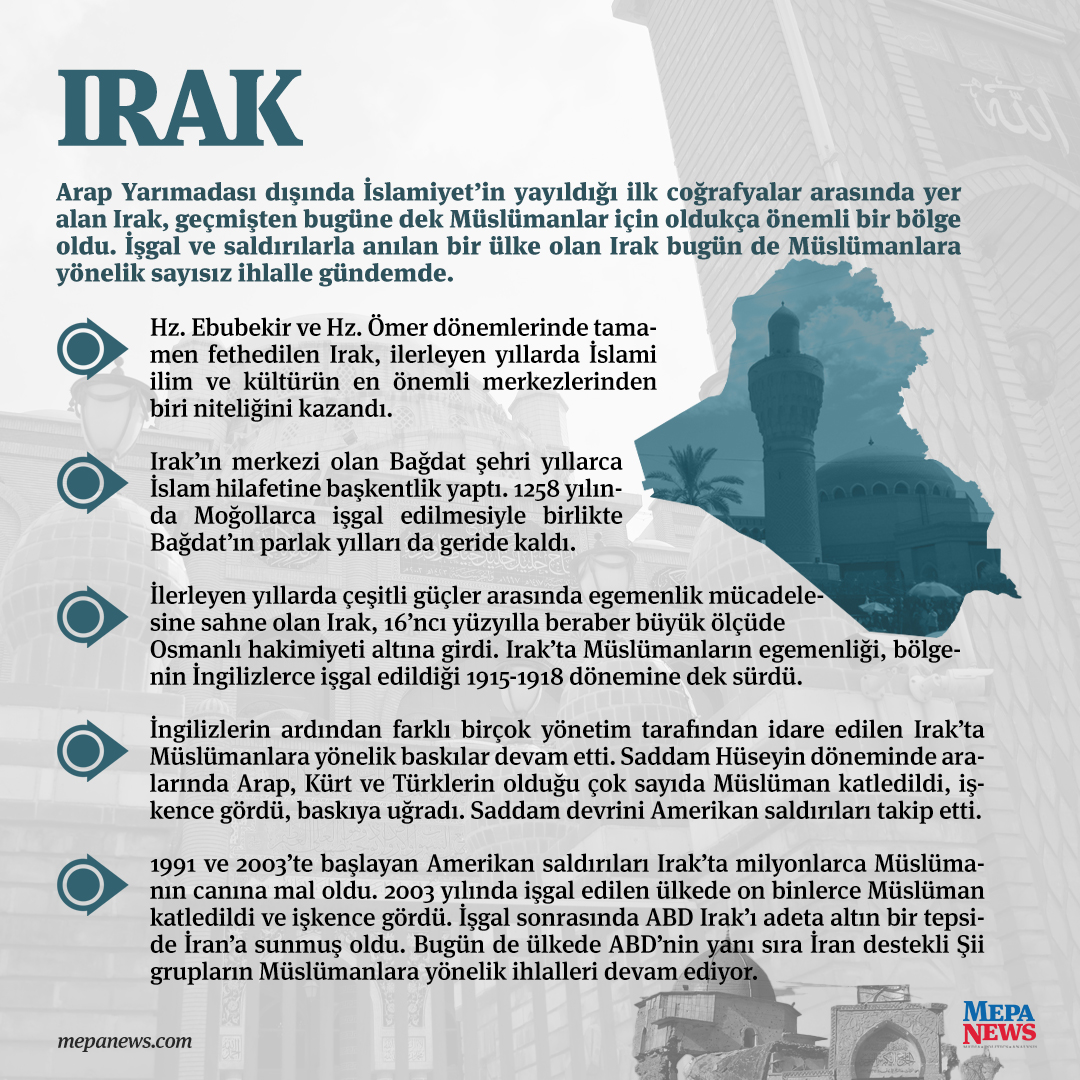 İşgal ve saldırılarla anılan bir ülke olan Irak bugün de Müslümanlara yönelik sayısız ihlalle gündemde.