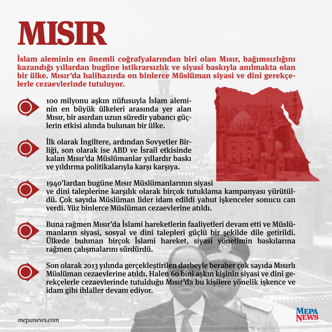 İlk olarak İngiltere, ardından Sovyetler Birliği, son olarak ise ABD ve İsrail etkisinde kalan Mısır’da Müslümanlar yıllardır baskı ve yıldırma politikalarıyla karşı karşıya.