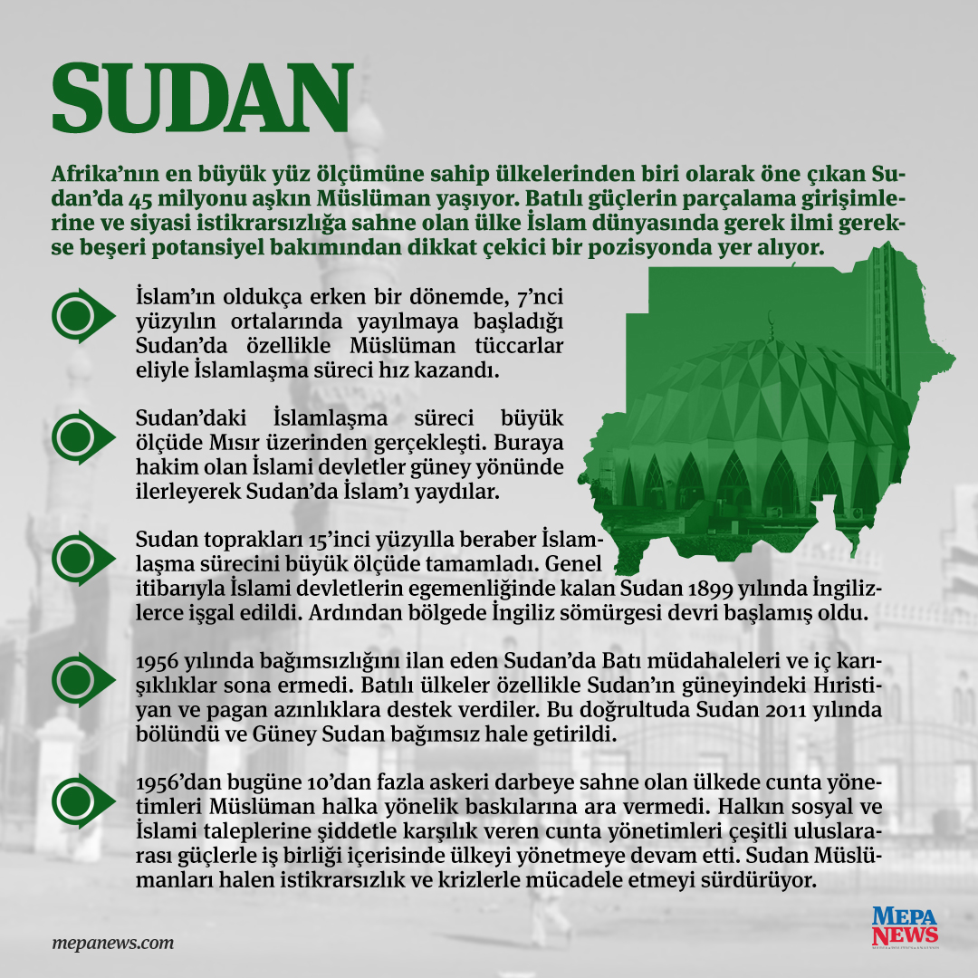 Afrika’nın en büyük yüz ölçümüne sahip ülkelerinden biri olarak öne çıkan Sudan’da 45 milyonu aşkın Müslüman yaşıyor.