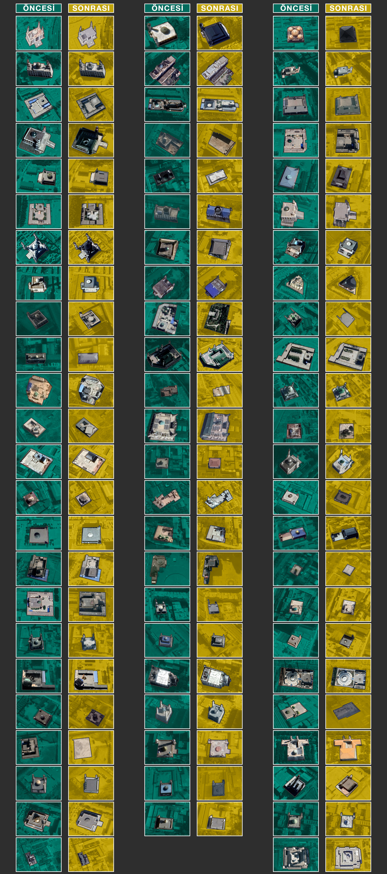 Çin rejimi tarafından kısa bir süre içerisinde tahrip edilmek istenen bazı camiler ve yapılan planlara göre bu camilerin yeni görüntüleri şu şekilde:
