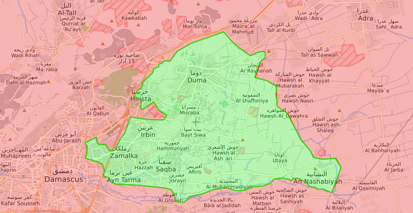 Rejim ve müttefiklerinin bölgedeki Cobar, Ayn Terma, Duma ve El Reyhan beldelerine hava ve kara bombardımanı geçekleştirdiği bilgisi de yerel kaynaklarca aktarılmakta. Rejim tarafından gerçekleştirilen bombardımanlar sebebiyle bölgede sivil kayıpların yaşandığı da ifade ediliyor.