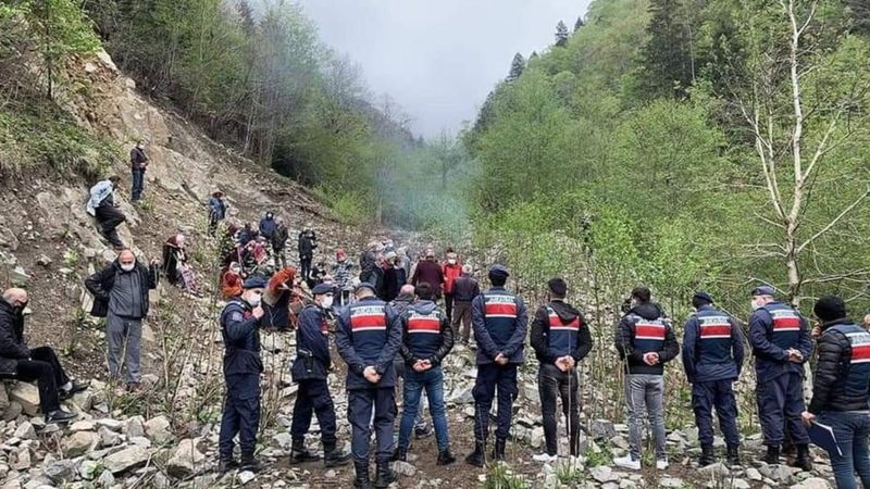 Rize'nin İkizdere İlçesi'nde yer alan İşkencedere Vadisi'nde yaşayan köylüler, bölgedeki taş ocağı projesine karşı eylemler düzenliyor.