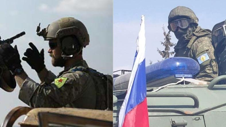 Köylerin Suriye ordusuna devredilmesi sırasında Rus özel birliklerine bağlı bir askerin koluna YPG'nin ana omurgasını oluşturduğu Demokratik Suriye Güçlerinin armasına taktığı görüldü.