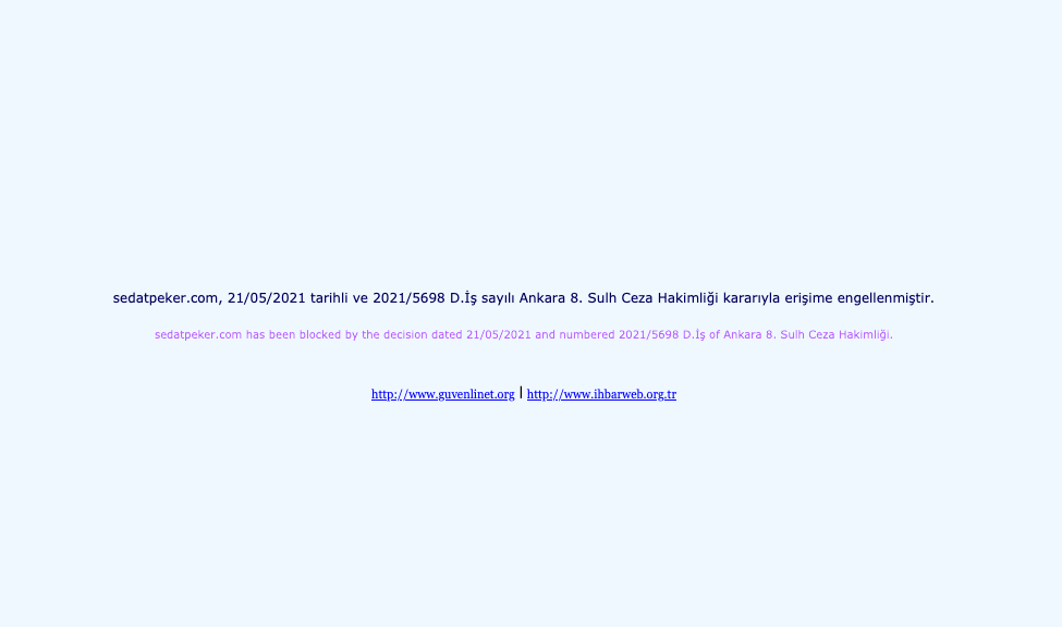 Sedat Peker'e ait olan http://sedatpeker.com adresi Ankara 8. sulh ceza hakimliğinin 21.05.2021 tarihli ve 2021/5968 değişik iş sayılı kararıyla engellendi.
