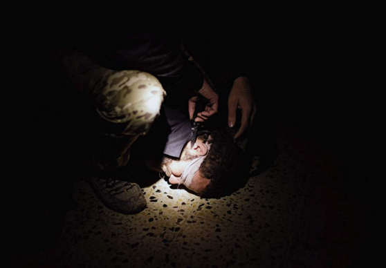 Ali Arkadi, Bağdat hükümetiyle beraber Musul'da bir eve yapılan gece baskınına katılıyor. Fotoğrafçının ifadelerine göre evde ailesiyle uyumakta olan Iraklı bir sivil, IŞİD mensubu olduğu iddiasıyla yakalanıyor. Elleri bağlanarak hükümete ait bir merkeze götürülüyor ve işkenceye maruz bırakılıyor.