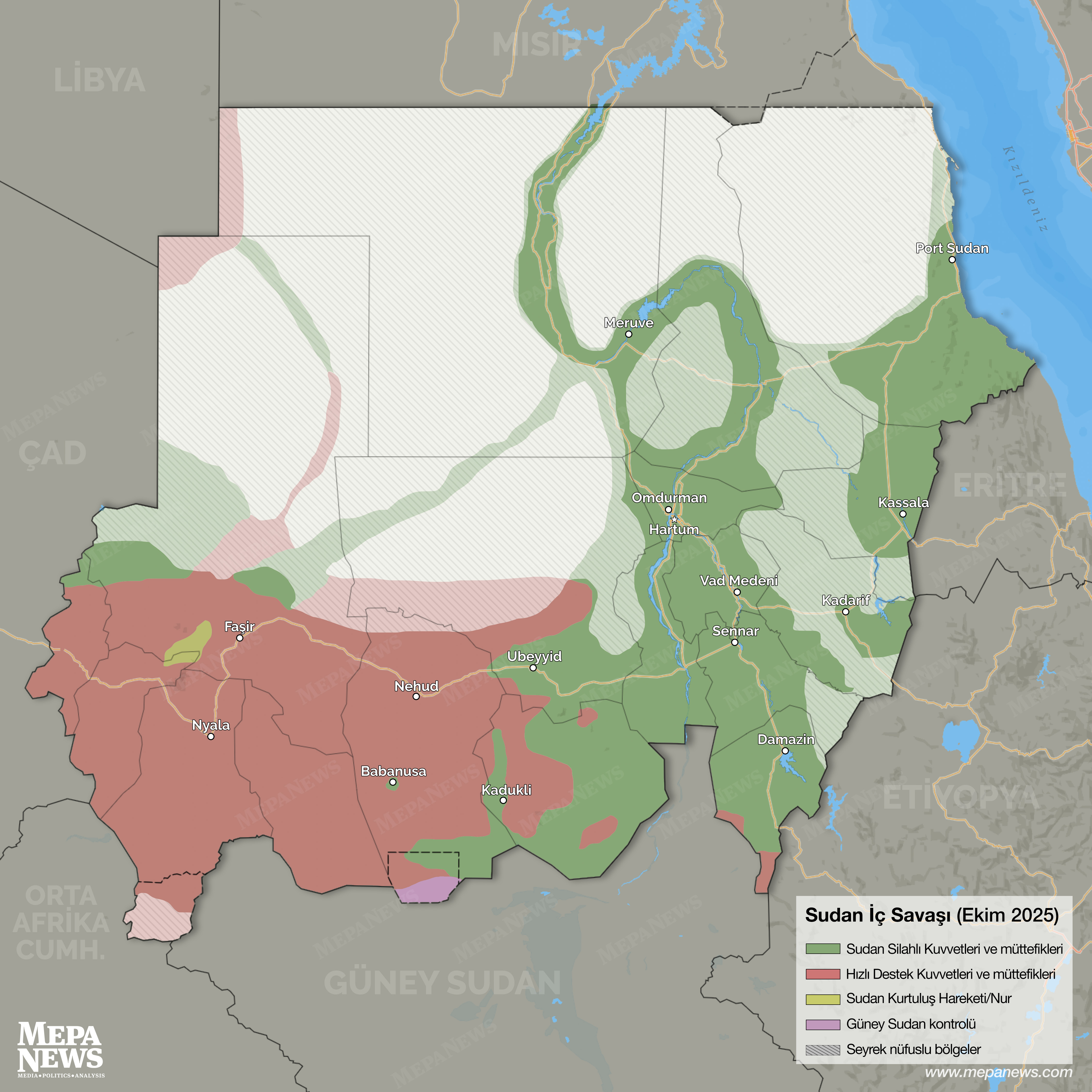 28 Ekim itibarıyla Sudan'da son durum ve yaklaşık kontrol alanları şu şekilde: