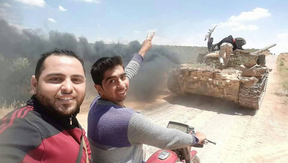Muhalifler Deraa'da rejimden ele geçirdikleri tankların üzerinde:
