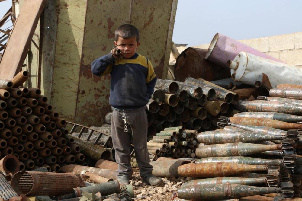 Şimdi muhaliflerin kontrolündeki İdlib ilinde yaşayan kırklı yaşlarındaki Suriyeli adam ve dört küçük çocuğu, parçalarını geri dönüştürmek için şarapnel ve patlamamış mermileri toplayarak geçimini sağlıyor.