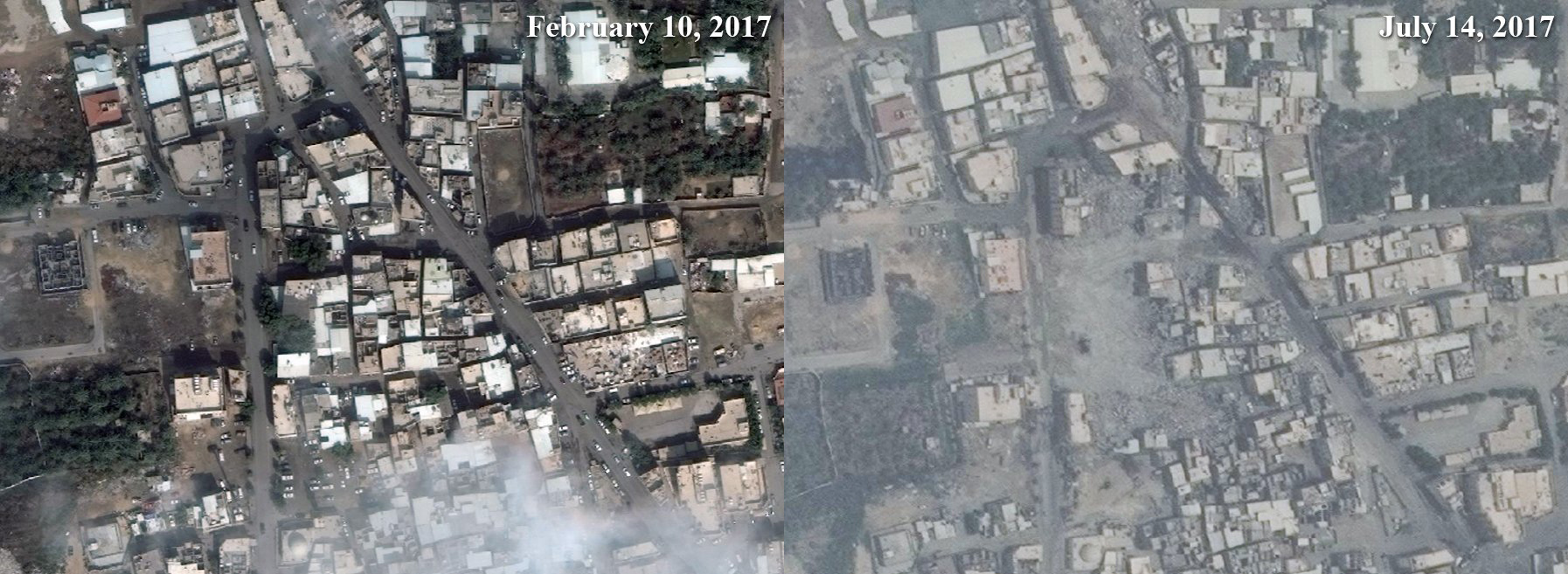 Avamiye beldesinde çatışmaların en yoğun yaşandığı bölgeye ait olan görüntülerin 10 Şubat ile 14 Temmuz arasında kaydedilmiş olduğu belirtilirken, yaşanan yıkımın Nisan ve Temmuz ayları arasında meydana geldiği ifade ediliyor.