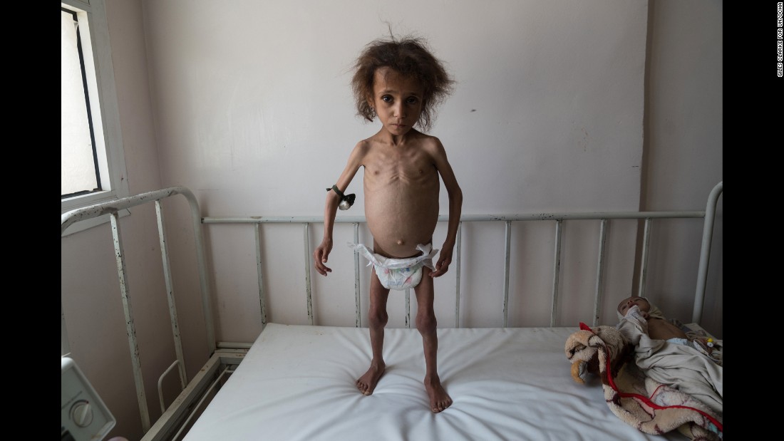 Batul Ali altı yaşında, buna rağmen büyük, korku dolu gözleri ve zayıf yapısından bunu asla tahmin edemezsiniz. Kaburga kemikleri, şişmiş karnı üzerinde çıkıntı yapmış. Batul’un kilosu 16’dan daha az. O, Yemen’de şiddetli kıtlıktan muzdarip yaklaşık yarım milyon çocuktan biri.