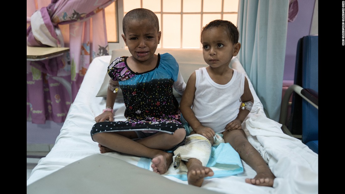 Üç yaşındaki Ahmed ve sekiz yaşındaki kız kardeşi Haula, evlerinin hedef alındığı bir hava saldırısında yetim kaldılar. Ahmed’in dizi tamamen kırılmış durumda ve sağlık personeli sağ bacağının daha fazla büyümeyeceğini söylüyor. Haula ise hava saldırıda dişlerini ve dilinin büyük bir kısmını kaybetti. (Saldırı Suudi Arabistan öncülüğündeki Arap Koalisyonu tarafından gerçekleştirildi)