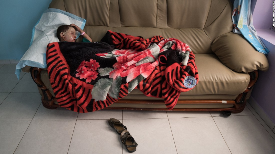 Batul Ali, Sa’da şehrindeki bir hastanenin yatağı üzerinde duruyor. Batul, şiddetli derecede ilerlemiş kıtlık ile mücadele etmeye çalışıyor. Kolundaki kesede çölde yaşayan ailesinin yılanlardan korunmak için kullandığı bir ilaç var.