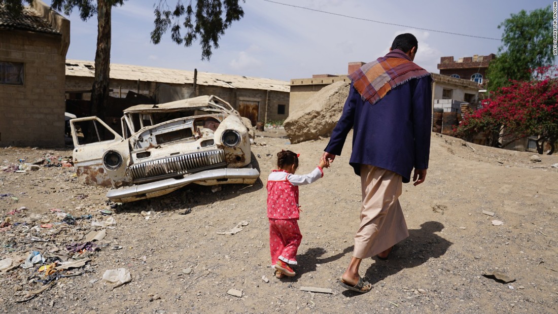 Abdullatif Allami, üç yaşındaki kızı Sara ile başkent San’a’nın Harat el-Mesne’a mahallesinde yürüyor. Aylık 120 dolar civarında bir emekli maaşı alıyordu ancak ödemeler yedi ay önce durdu ve aile yaşayabilmek için bağış ve yardımlara bel bağlamış durumda.