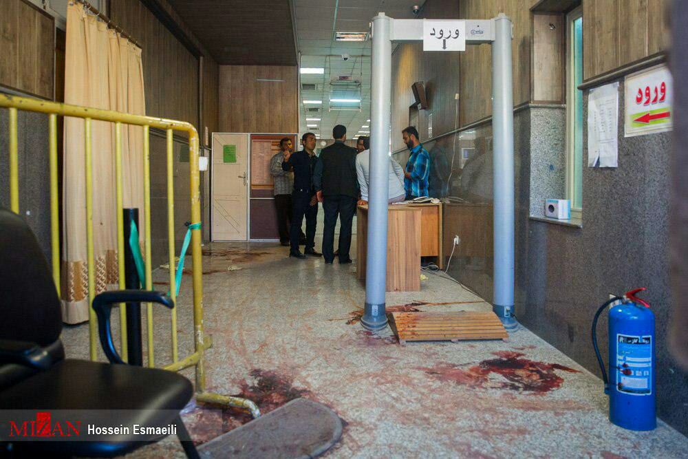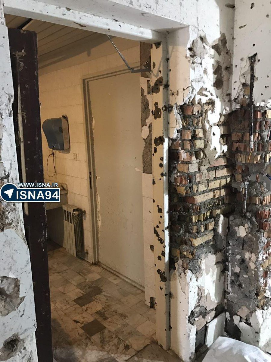 Fotoğraf İran parlamentosunun 4. katından. Görüntülerde duvarlardaki mermi izleri göze çarpıyor. Duvardaki tahribatın sebebinin İran güçlerinin attığı bir bomba olduğu ifade edildiği gibi IŞİD mensuplarından birinin üzerindeki bombaları patlatmış olabileceği de düşünülüyor.