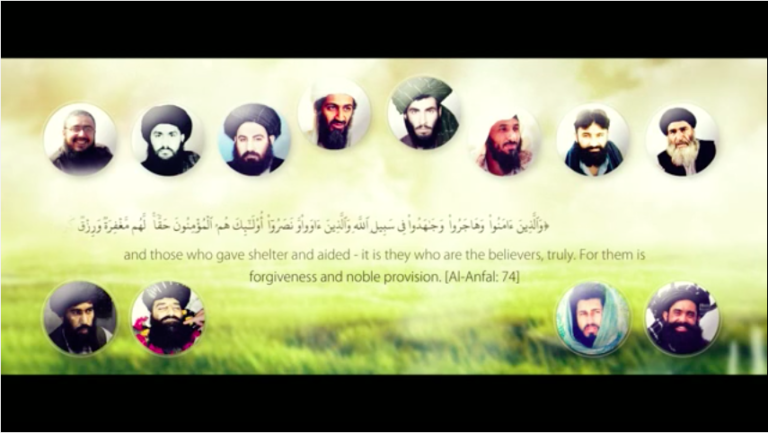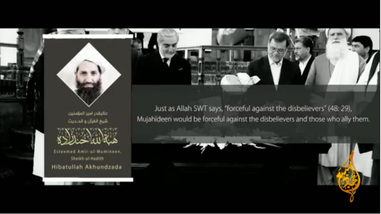 Videoda, Afganlar ile cihat etmek için bölgeye gelen yabancılar arasındaki bağı vurgulama amacıyla kullanılan bir Kur'an ayeti de yer alıyor. "İman edip hicret edenler, Allah yolunda cihad edenler, onları barındıranlar ve onlara yardım edenler; işte onlar gerçek mü'minlerdir. Onlar için mağfiret ve cömertçe verilmiş rızıklar vardır." [Enfal Suresi 74. ayet] mealindeki ayetle birlikte, Molla Ömer ve Molla Mansur gibi Taliban liderlerinin yanı sıra Usame bin Ladin ve geçtiğimiz yıl öldürüldüğü zamana kadar Arap Yarımadası El Kaidesi'nin liderliğini yapan Nasır El Vuhayşi gibi El Kaide liderlerinin fotoğraflarına yan yana yer verildi.