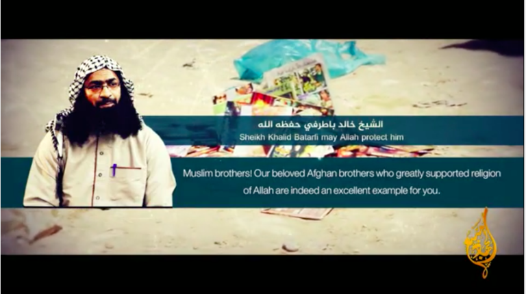 Arap Yarımadası El Kaidesi'nin üst düzey isimlerinden Şeyh Halid El Batarfi'den bir klip de videoya dâhil. Batarfi, 1990'lı yıllarda Afganistan'da eğitim görmüş ve savaşmış bir isim. The Long War Journal Batarfi'nin, diğer Arap Yarımadası El Kaidesi liderleri gibi hem yerel hem de küresel olmak üzere iki rol üstlendiğini düşünüyor. Buna göre Batarfi, El Kaide'nin küresel yönetim ekibinde.