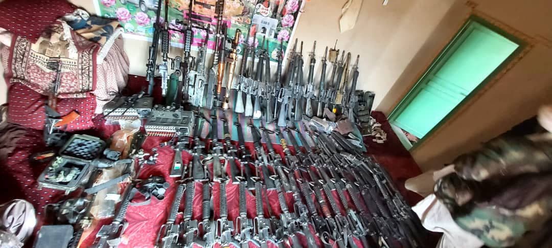 Taliban tarafından askeri üsten ele geçirildiği belirtilen silah ve diğer eşyalar (Sosyal medya)