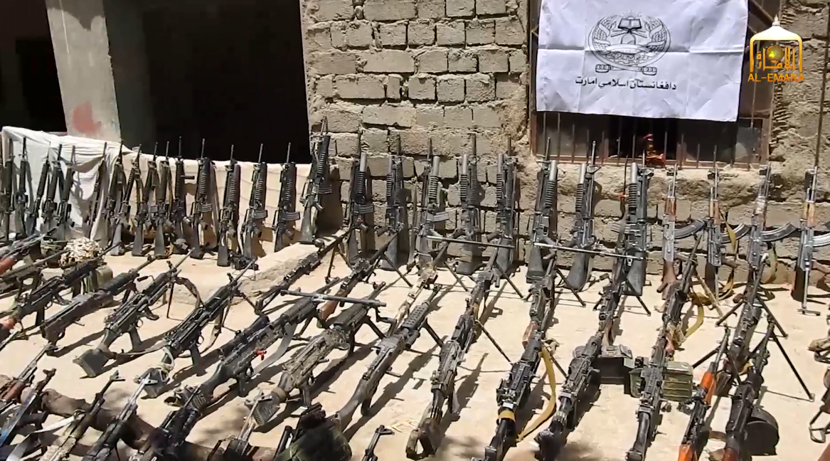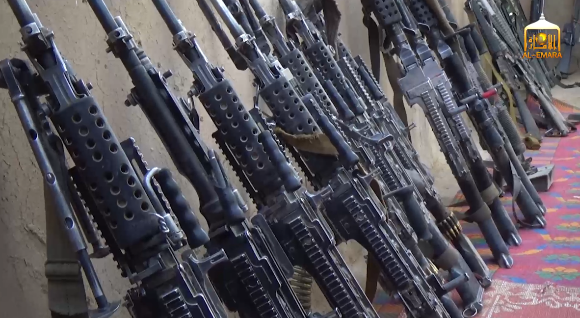 Ülkenin güneyinde stratejik öneme sahip Kandahar vilayetine bağlı Hakriz ilçesinin Karzali bölgesindeki askeri merkeze Taliban güçlerince düzenlenen saldırıda ele geçirilen silah ve mühimmatlar da Taliban kaynakları tarafından servis edilen videoda sergileniyor.