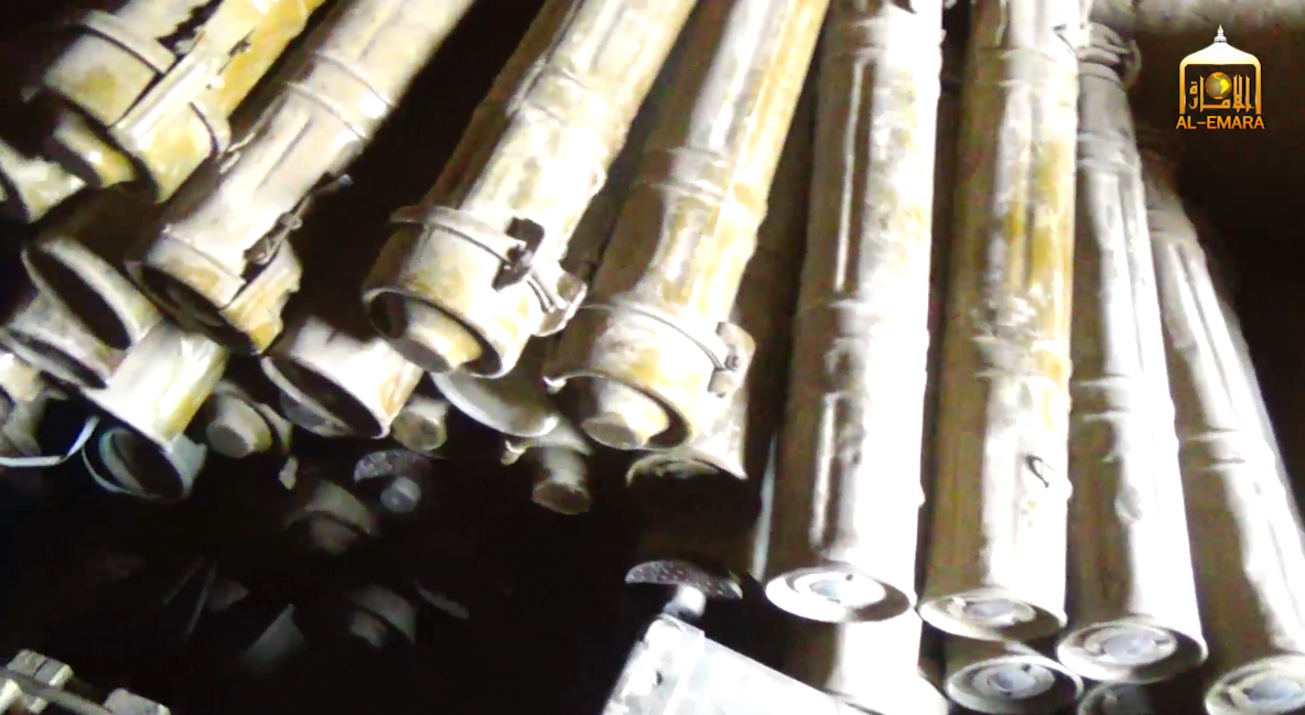 Çeşitli çaplarda havan silahlarının da ele geçirildiğini açıklayan Taliban, bu silahlara ait çok sayıda mühimmatı da videoda sergiledi.