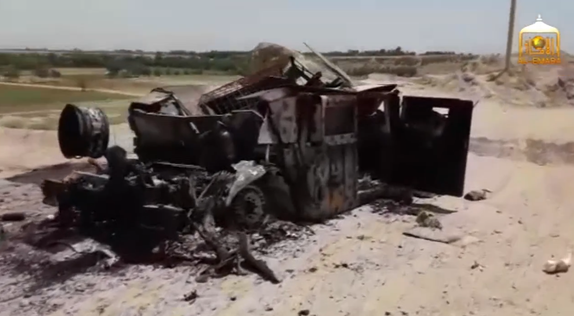 Videonun ilerleyen dakikalarında Aliabad ilçesinde yaşanan çatışmalarda Kabil hükümeti güçlerine ait, kullanılamaz hale gelmiş araçlar göze çarpıyor: