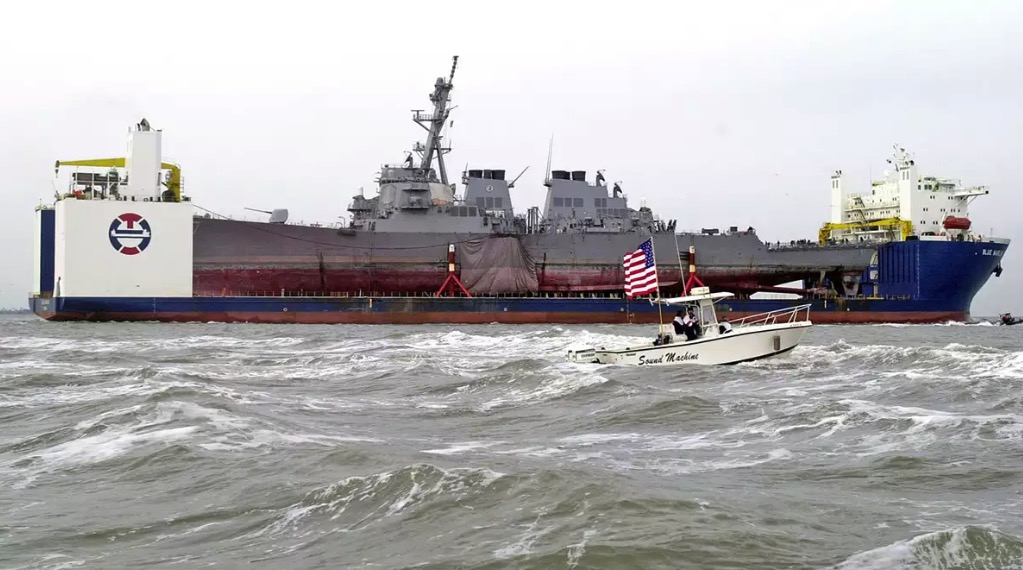 USS Cole saldırının ardından kurtarma gemileriyle ABD’ye geri götürüldü.