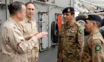 General Kiani, (sağdan ikinci) Amerikalı General Michael Mullen'e brif verirken