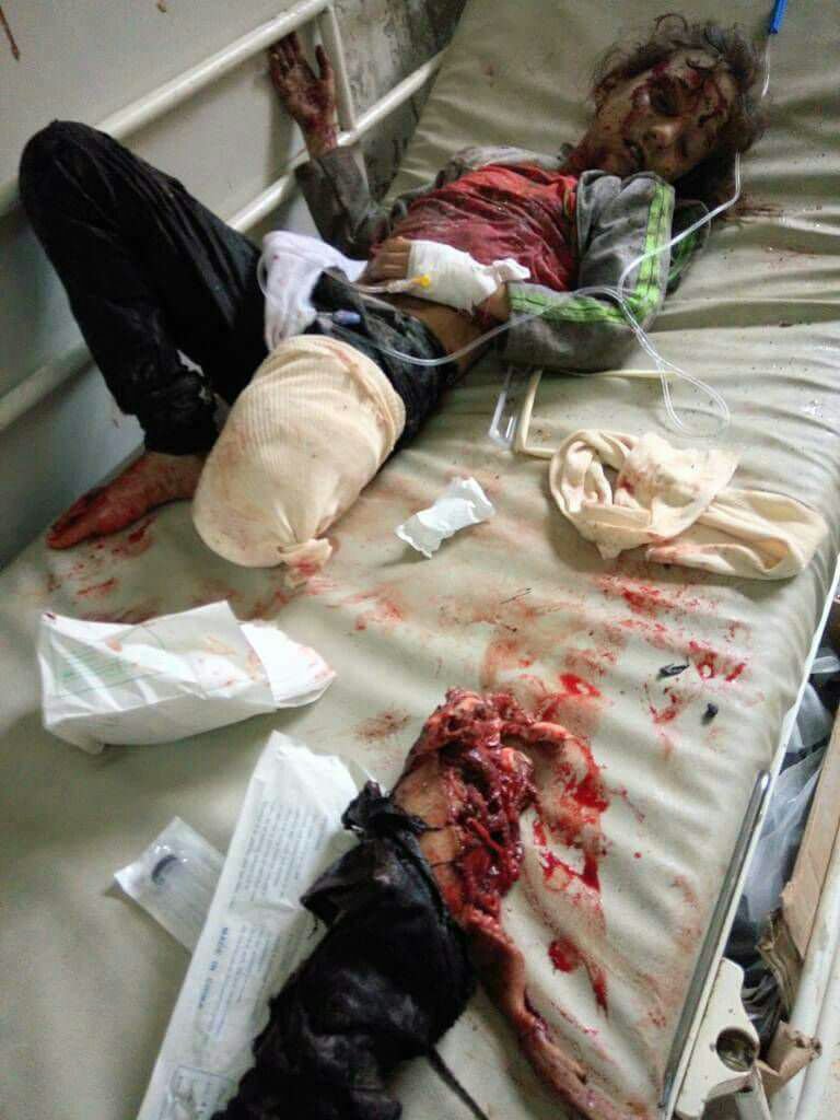 İdlib'in Cisr eş Şuğur kentinde Rus bombardımanı sonucu bacağını kaybeden bir kız çocuğu