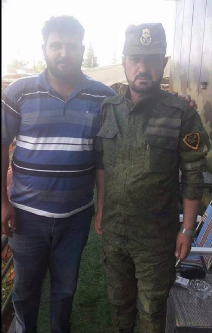 Ebu Hayr rejim ordusuna bağlı Kaplan Kuvvetleri komutanı Albay Suheyl Hasan ile birlikte: