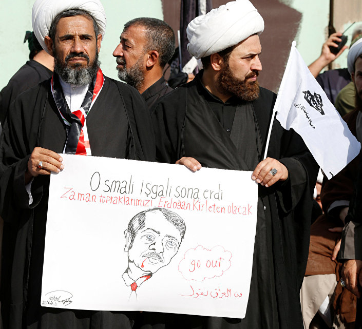 Irak bayrakları ve Türkiye karşıtı dövizler taşıyan Iraklılar, “İşgalci dışarı” sloganları attı. Erdoğan’ın çiziminin yer aldığı bazı dövizlerde “Osmanlı işgali sona erdi” ifadeleri de yer aldı. Sadr, dün televizyonlardan yayımlanan mesajında, Başika'daki askeri varlığından dolayı Türkiye'yi protesto etmek için Türkiye'nin Bağdat Büyükelçiliği önünde gösteri düzenlemelerini istemişti.