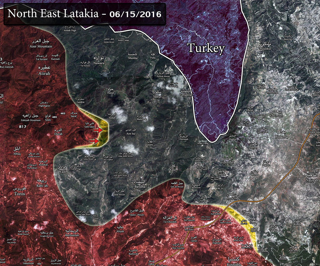 Türkmen Dağı’nın alınması için Rus savaş uçaklarının hava desteğiyle 5 gün önce karadan 7 bin askerle operasyon başlatan Suriye rejimi, dün öğle saatlerinde stratejik konumdaki Ayn İsa kasabasını ele geçirmişti. Rejim birlikleri Türkmen Dağı bölgesinde bulunan Nusra Cephesi, Ahrar uş-Şam ve ÖSO birlikleriyle 5 gündür savaşıyordu.