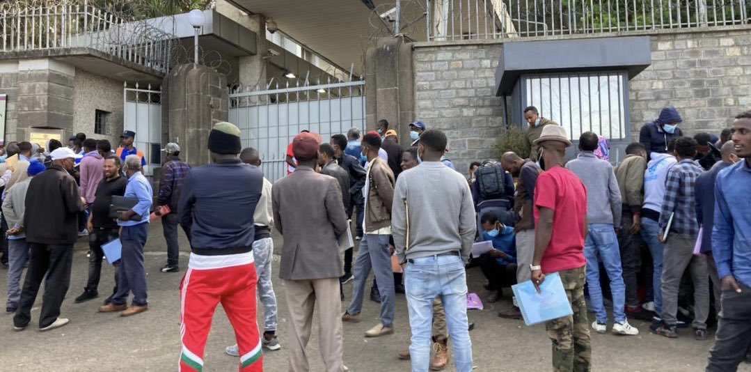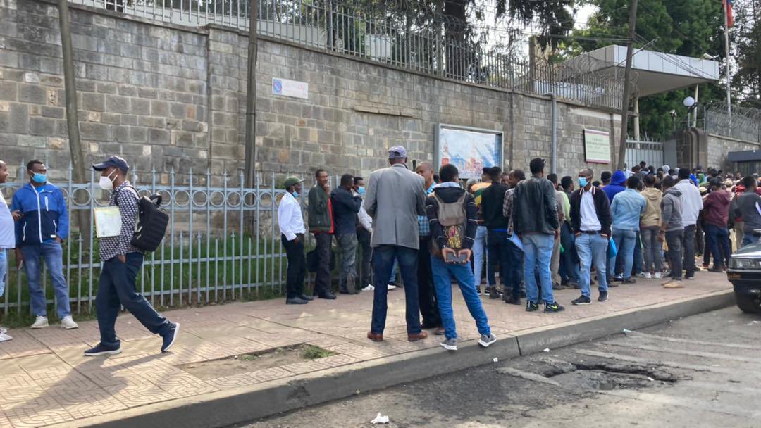 Rusya Büyükelçiliği önünde bekleyen Etiyopyalıların çoğu ülkelerinin içerisinde bulunduğu ekonomik durum nedeniyle savaşmak için Ukrayna'ya gitmek istiyor.