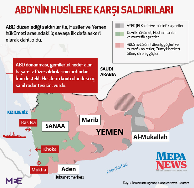 ABD donanması, Husilerin ABD gemisi USS Mason'u hedef almakta kullandığı radar üslerini Cruise füzesiyle vurdu. ABD Devlet Başkanı Barack Obama'nın yetki verdiği bu saldırı, ABD'nin Husileri doğrudan hedef aldığı ilk saldırı hüviyetinde.