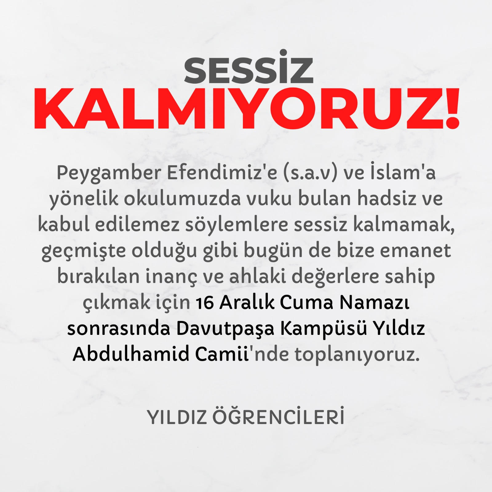 Bugün cuma namazı sonrasında öğrenciler, Davutpaşa Kampüsü Yıldız Abdulhamid Camii'nde bir araya geldi.