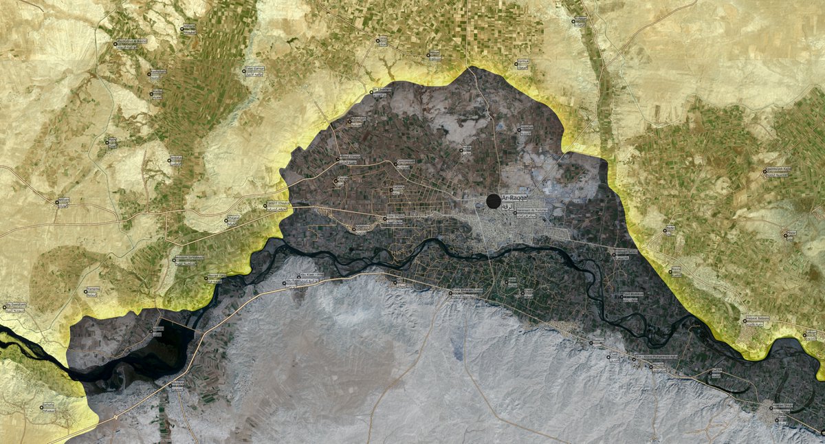 Rakka'da son durum haritası [Sarı: YPG, Siyah: IŞİD]: